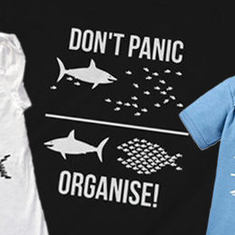 Support the fund by buying T-shirts and postcards with classic Ken Sprague designs.