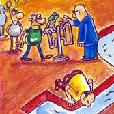 This year's Ken Sprague International Political Cartoon Competition has been an even bigger success than the last one. Over 300 cartoonists from 55 countries submitted cartoons on the theme of global warming and our threatened environment. The overall quality of the cartoons was also of an extremely high standard. The jury of leading cartoonists, Martin Rowson and Morten Morland, New Internationalist Editor, Alan Hughes, Morning Star Features Editor, Richard Bagley, Green Party Principal Male Speaker, Dr. Derek Wall, graphic designer, Michal Boncza and Springboard director, Liz Willis were quite taken aback by the enormous response this year, and the entries have been simply outstanding.